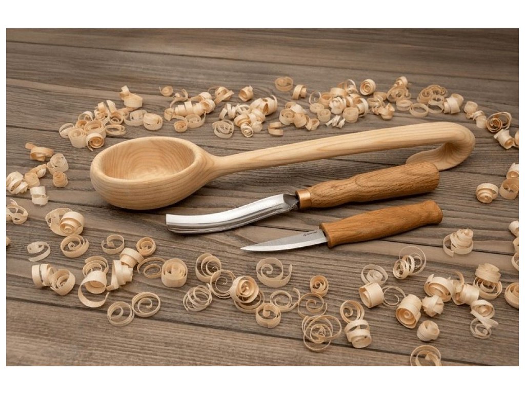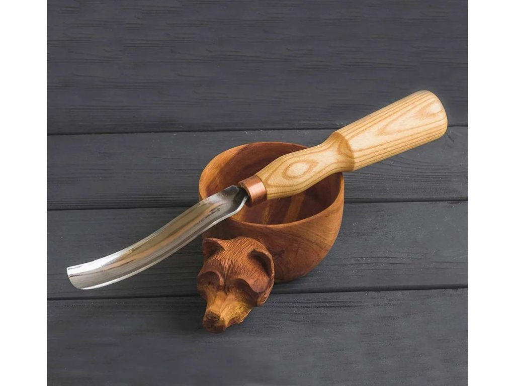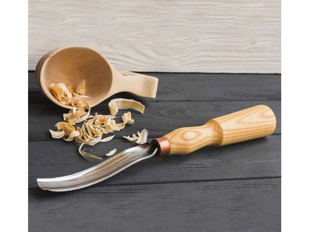 Prohnuté řezbářské dláto určené k vyřezávání hlubokých prohlubní a vydlabávání misek a lžic ideální pro začátečníky.