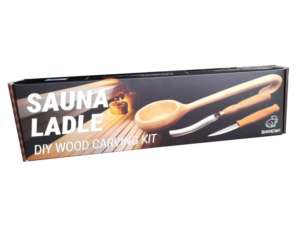 Vyřezávací sada pro kutily je kompletní sada pro výrobu tradiční dřevěné naběračky do sauny, ideální pro začátečníky i zkušené řezbáře.