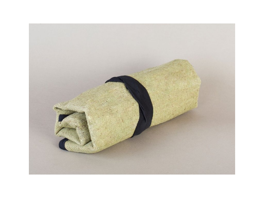 rolovací pouzdro pro uložení 12 řezbářských nožů, dlát a dalších nástrojů ze silného plátna prošitého lněnou nití doplněného o tkanice na zavazování