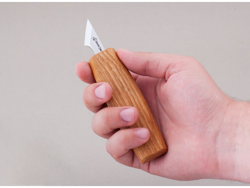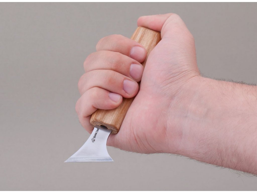 Řezbářský nůž se šířkou řezné části 20 mm navržený pro geometrickou řezbu, vyřezávání geometrických vzorů do dřeva, zarovnávání pozadí s reliéfními dřevořezbami a další zpracování dřeva. Nůž má zkosení 45°. Hmotnost 60 g, celková délka 150 mm, čepel z uhlíkové oceli (56 - 58 HRC), šířka řezné části 20 mm, rukojeť z jasanového dřeva, délka rukojeti 105 mm