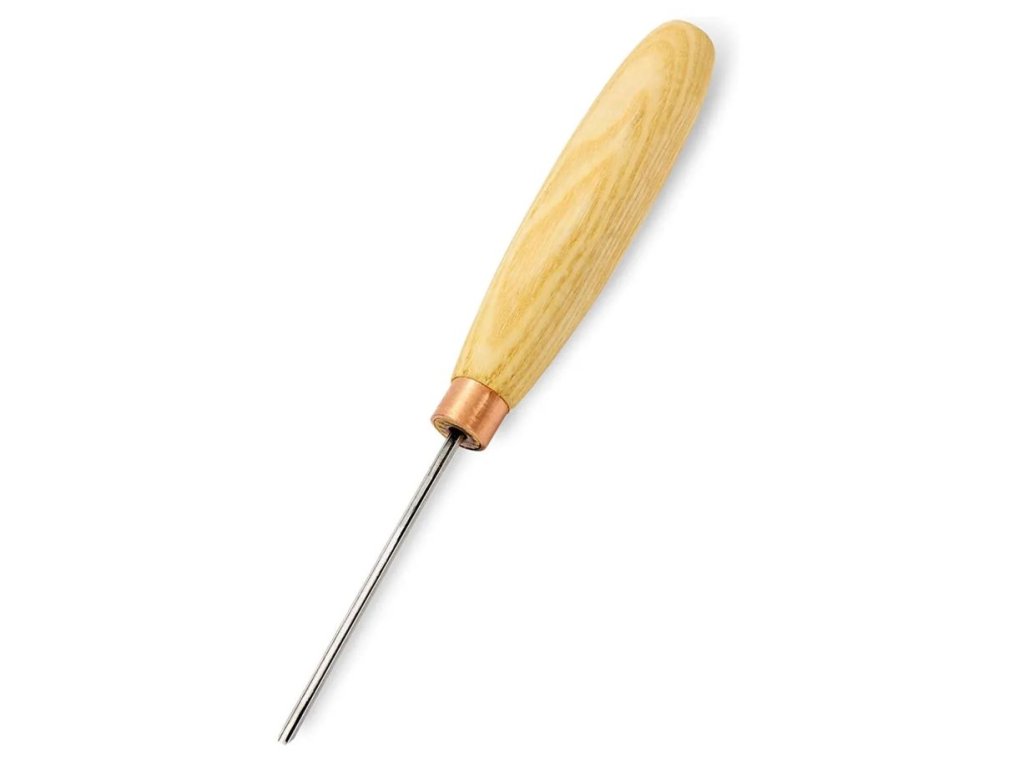 Řezbářský nůž navržený pro běžné vyřezávání, vyřezávání a obecné zpracování dřeva, který slouží jako multifunkční hoblovací nástroj. Je ideální pro broušení a ostraňování drobných vrstev dřeva, řezání a vyrovnávání povrchů různých prvků a pozadí. Díky ostrému a úzkému tvaru řezné části může proniknout do těžko přístupných míst. Hmotnost 60 g, celková délka 165 mm, čepel z uhlíkové oceli (56 - 58 HRC), délka řezné části 60 mm, rukojeť z jasanového dřeva, délka rukojeti 105 mm