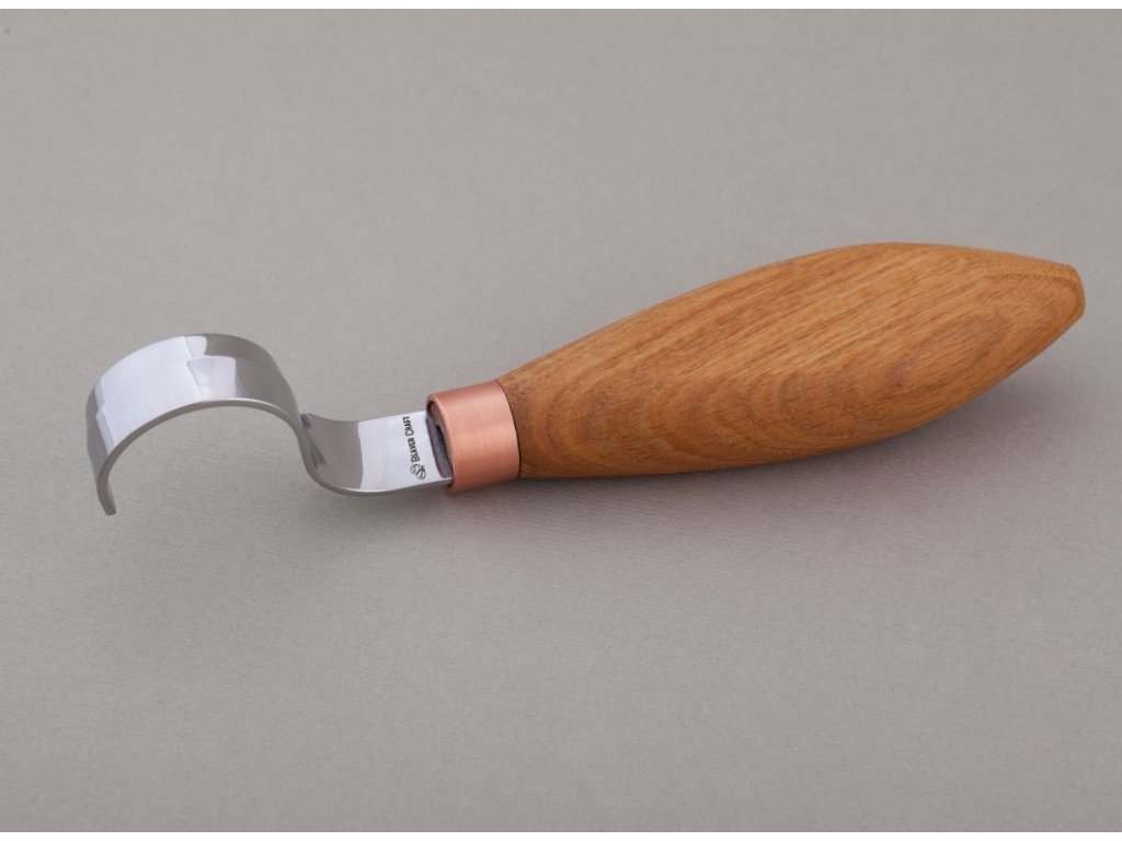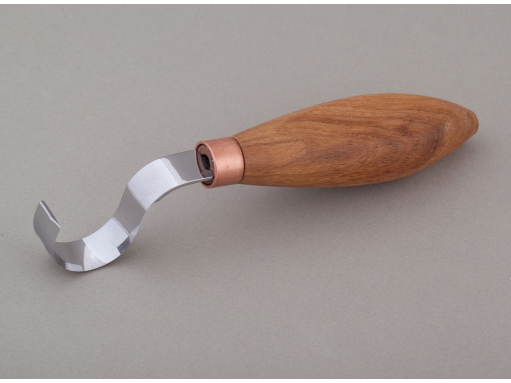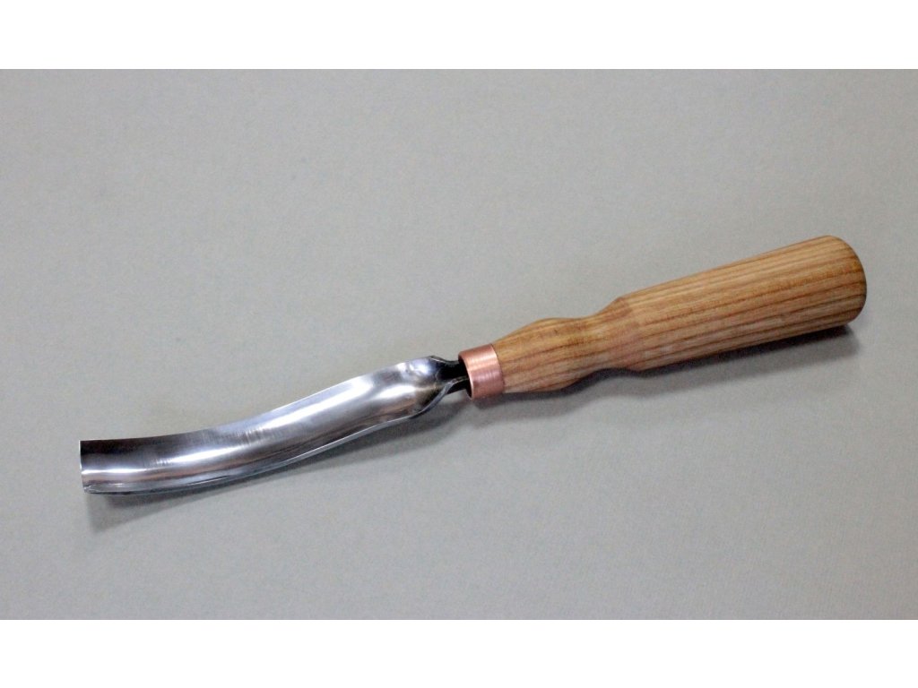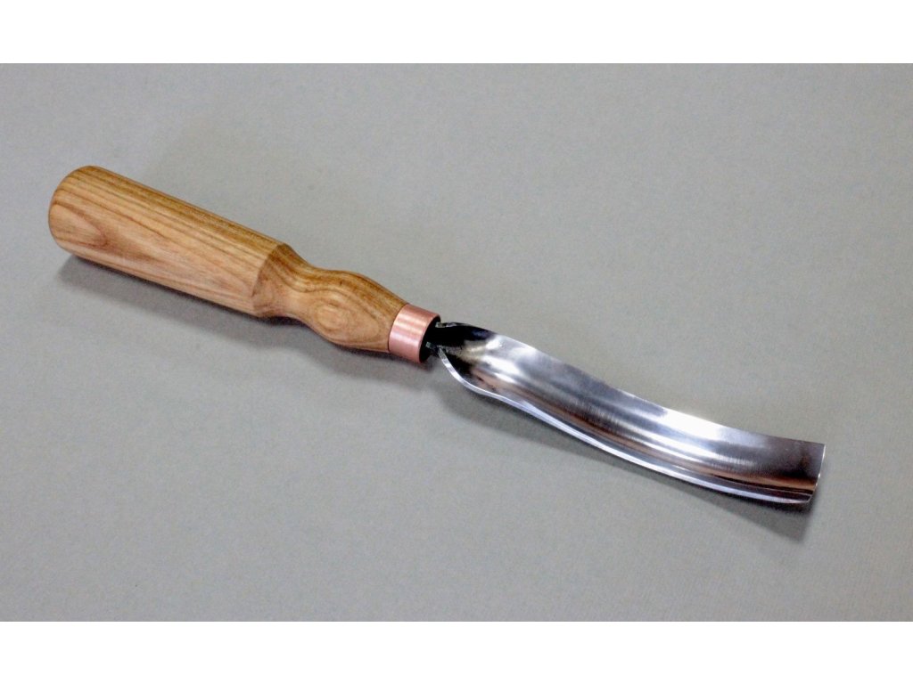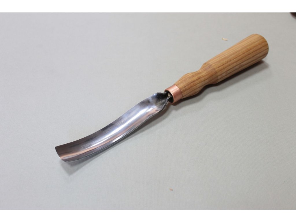 Řezbářský nástroj speciálně navržený pro vyřezávání lžic, misek, Kuksy a pro hloubení oblouků, křivek a rádiusů. Zakulacený průměr je 30 mm, což je ideální pro malé a střední výrobky. Jednostranné ostří. Hmotnost 100 g, celková délka 195 mm, čepel z uhlíkové oceli (56 - 58 HRC), průměr 30 mm, rukojeť z dubového dřeva, délka rukojeti 130 mm