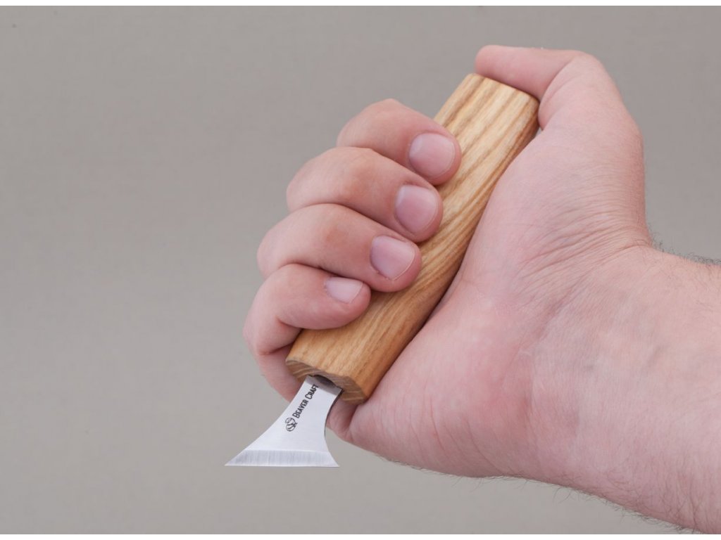 řezbářský nůž určený pro geometrickou řezbu s čepelí z uhlíkové oceli se šířkou řezné části 30mm a rukojetí z jasanu